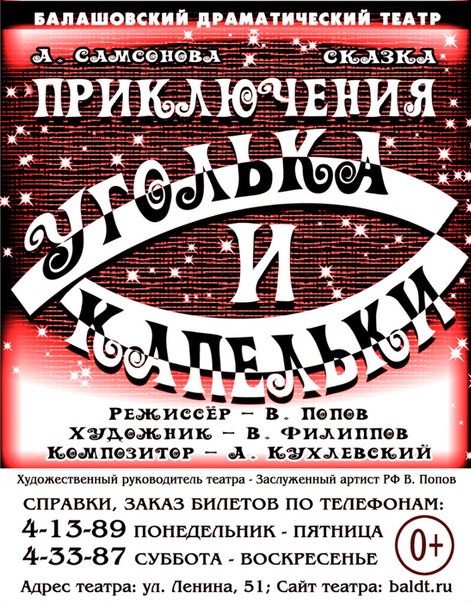 12.00 часов А.Самсонова «Приключения Уголька и Капельки», сказка, 0+