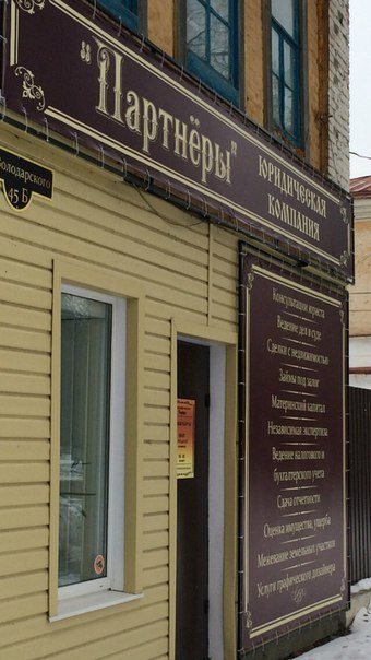 Известные в Балашове риелторы , часто упоминаемые в контексте дела семей, потерявших жилье из-за невыплаты займов под это самое жилье, открыли юридическую фирму "Партнеры", которая, если верить вывеске, будет заниматься юридическим сопровождением деятельности предприятий, оформлением недвижимости и выдачей займов под залог, ведением дел в суде и т.д. (на фото) Расположена контора по адресу Володарского 45б. Примечательно, что раньше по этому адресу располагался офис компании "Партнер", которая занималась ведением бухгалтерского учета.