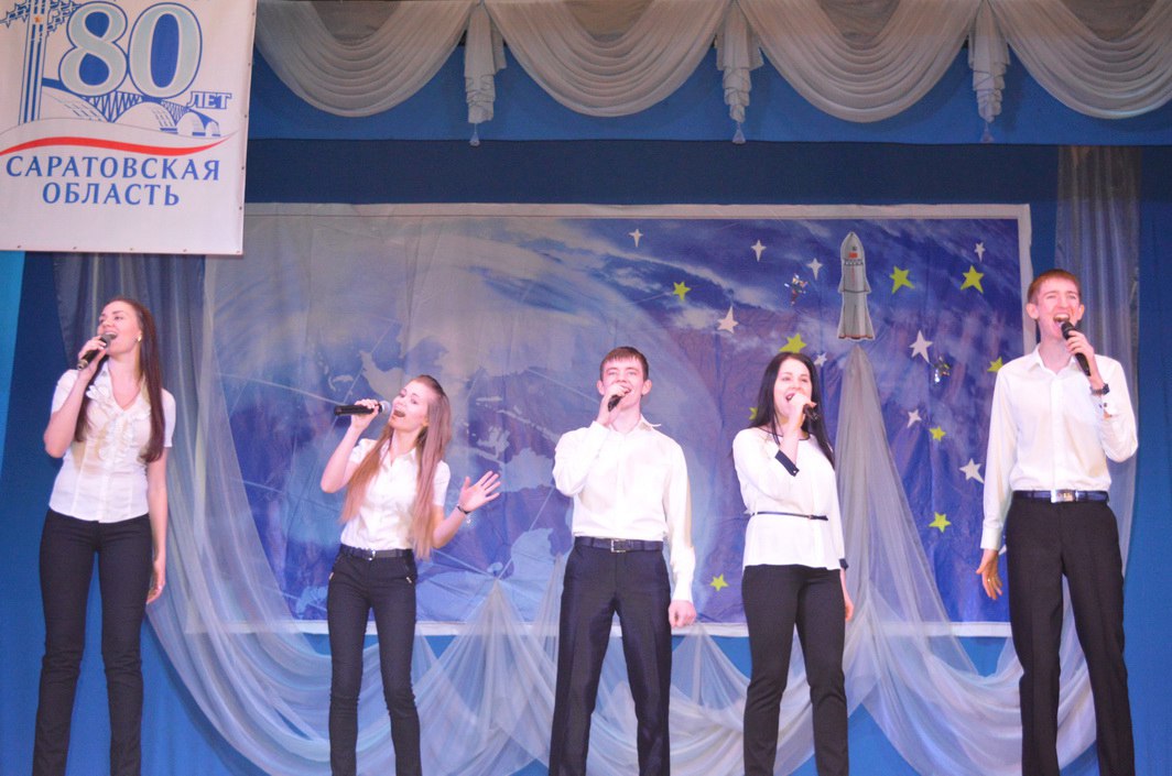 А затем на сцену вышли юные космонавты - воспитанники Балашовской военно-патриотической школы юных космонавтов имени дважды Героя Советского Союза, летчика-космонавта СССР А.А.Леонова.