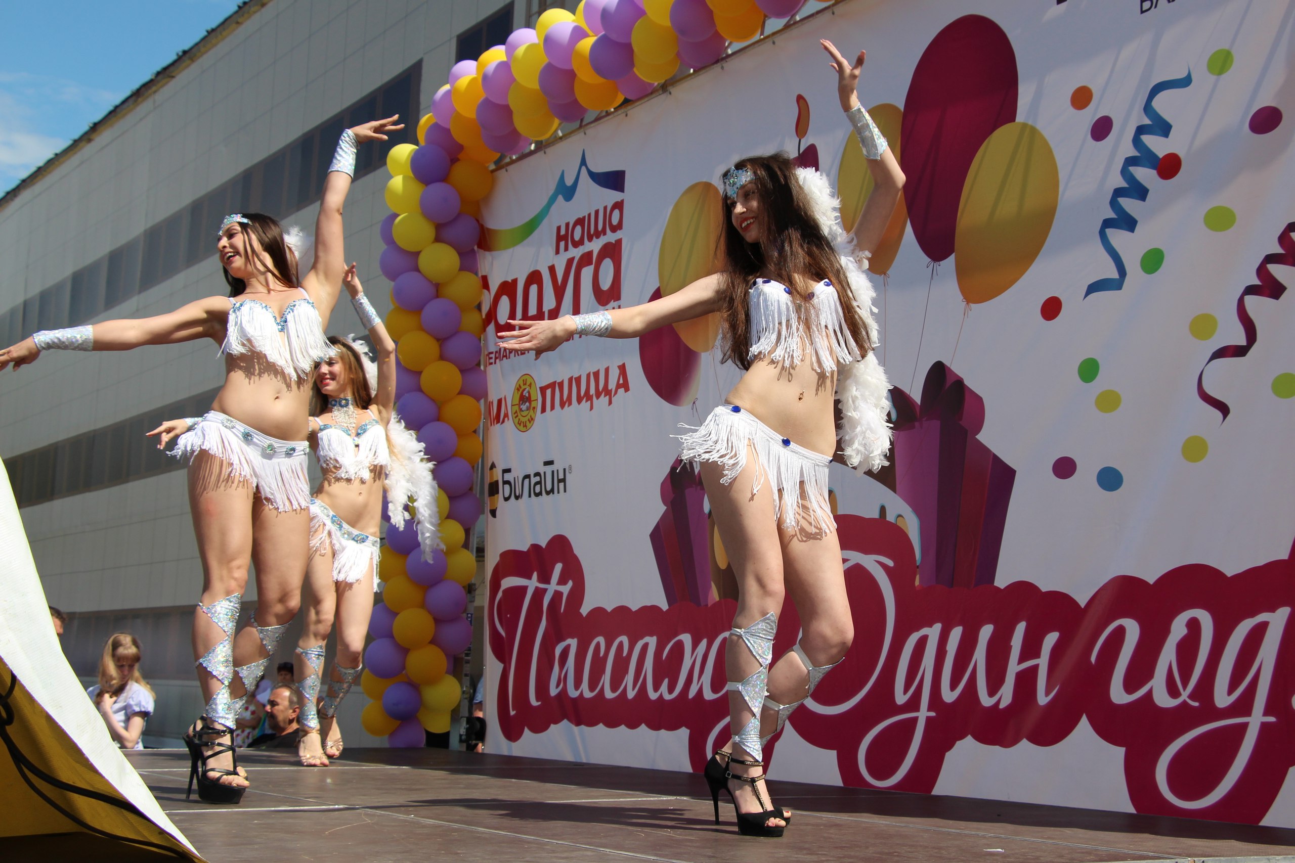 Танцевальные коллективы города с удовольствием поздравляли Пассаж с праздником с большой сцены.