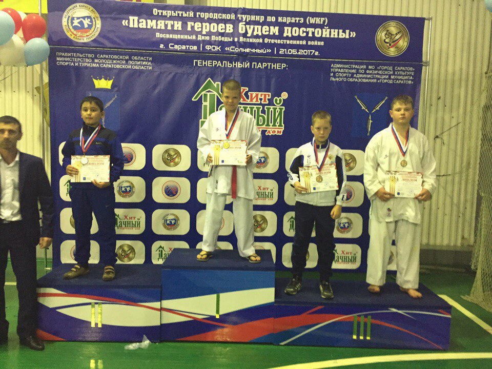 21.05.2017 г. в городе Саратове проходил Открытый городской турнир по каратэ WKF "Памяти героев будем достойны" посвящённый Дню Победы.Воспитанники с/к "ЛЕГИОН" Ярослав Дыков и Данила Юрков стали чемпионами данных соревнований,в категориях юниоры 16-17 лет (-68 кг) и мальчики 10-11 лет (+42 кг).