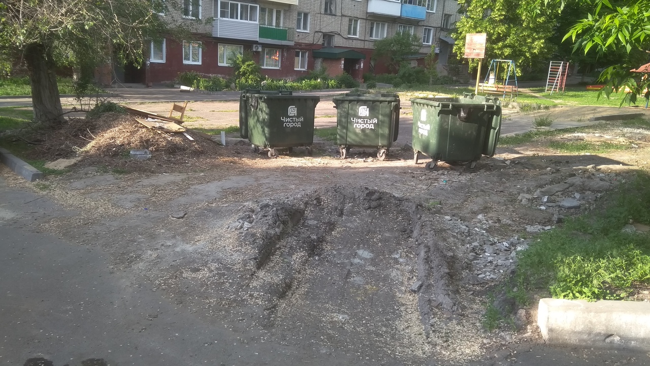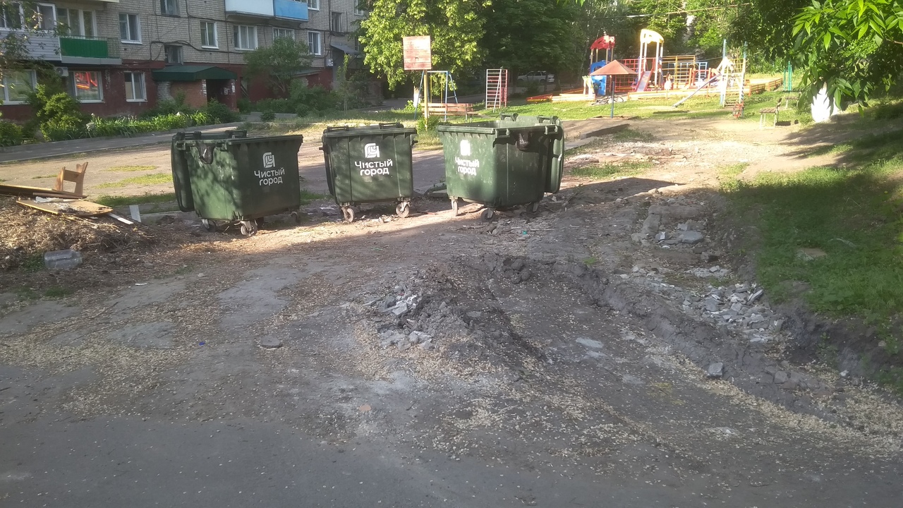 Кучи строительного мусора убирают, но редко. Вокруг контейнерной площадки очень грязно: бутылки, пакеты, упаковки. Сердобольные (больные?) люди, желающие накормить бродячих животных, раскладывают объедки со стола. После ремонта всех дворов в прошлом году в этом месте было чисто, но сейчас опять свалка. Увы(